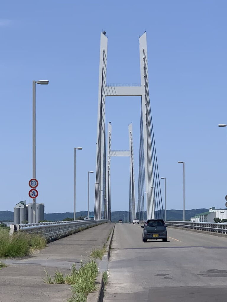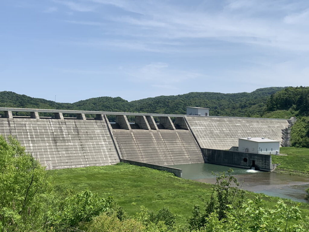 途中、当別ダムに立ち寄り。ここは「台形CSGダム」というちょっと珍しい構造のダムで、見た目もどっしりしていてカッコいい。「ふくろう湖」と名付けられたダム湖も穏やかで、望郷橋からの眺めがまたいい。ついつい写真タイム。
