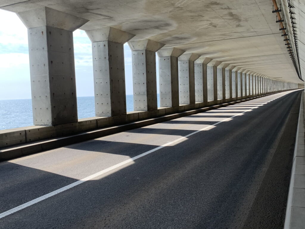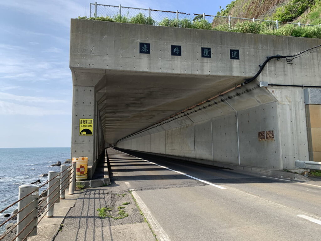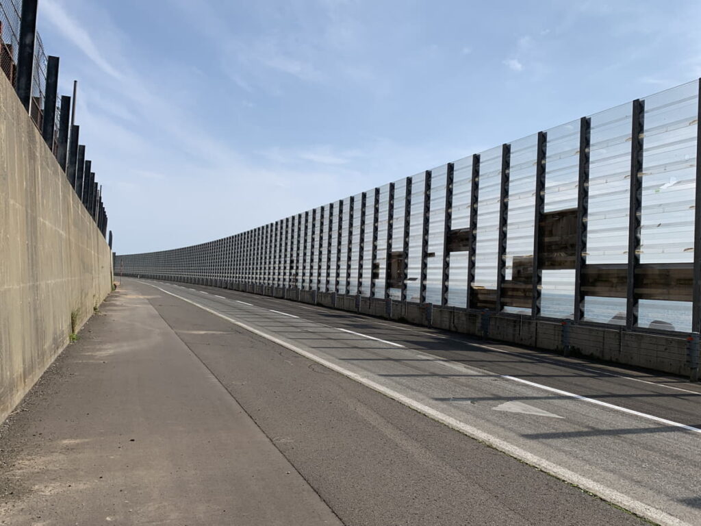 この先は、海側に透明なフェンスがあって、吹雪対策なんだろうけど、海がちょっと見づらいのが残念。でも、海岸ぎりぎりの道はやっぱり気持ちいい!