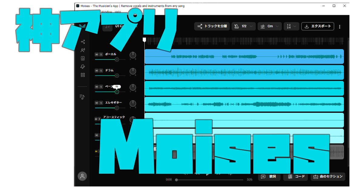 → Moisesでパートごとに分けて、テンポを落として練習できる!